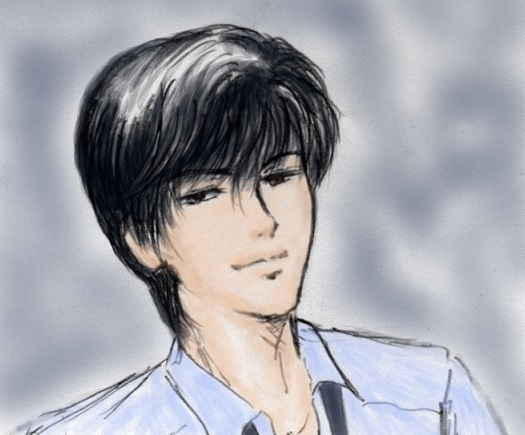 椅子に座って脚組んでるとこ描きたかったけど、理事長室の椅子の構造が不明で描けなかった…ので肩より上だけトリミングして着彩しました。